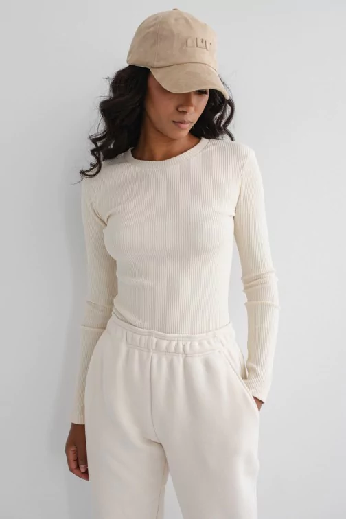 Bawełniana prążkowana bluzka z długim rękawem to dopasowany model typu basic o regularnej długości. Fason z niewielkim okrągłym dekoltem, uszyty jest z wysokiej jakości elastycznej dzianiny, która przyjemnie otula ciało podczas noszenia. Dodatek elastanu do materiału chroni dodatkowo przed zagnieceniami. Klasyczny top z długim rękawem będzie świetną bazą do wielu stylizacji i sprawdzi się świetnie jako element minimalistycznej kapsułowej garderoby.