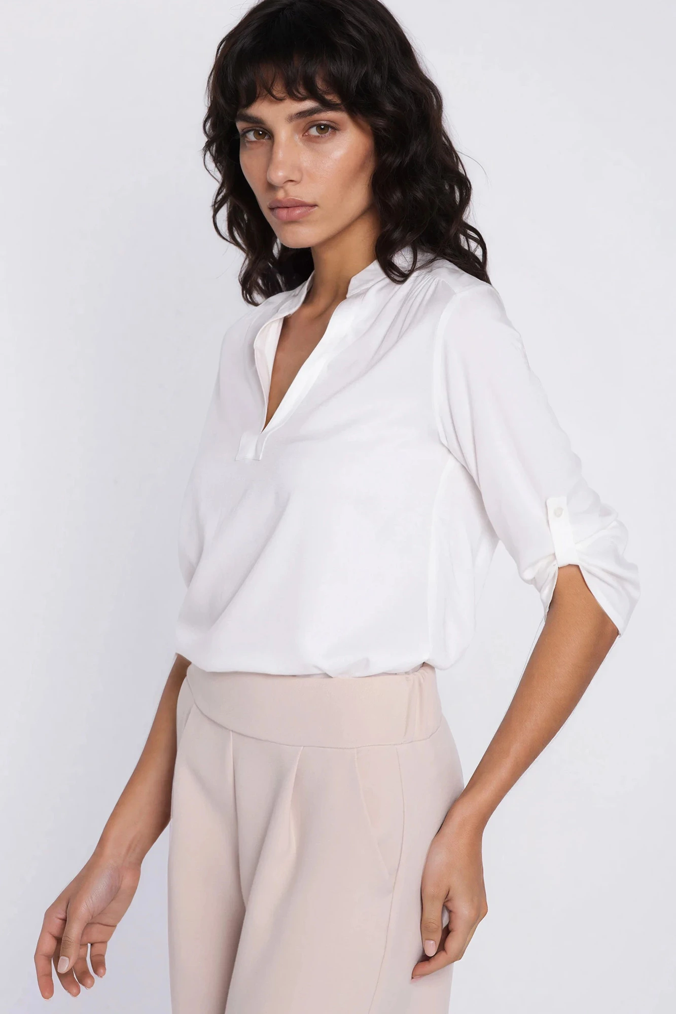 Bluzka damska z dekoltem w serek i podpinanymi rękawami