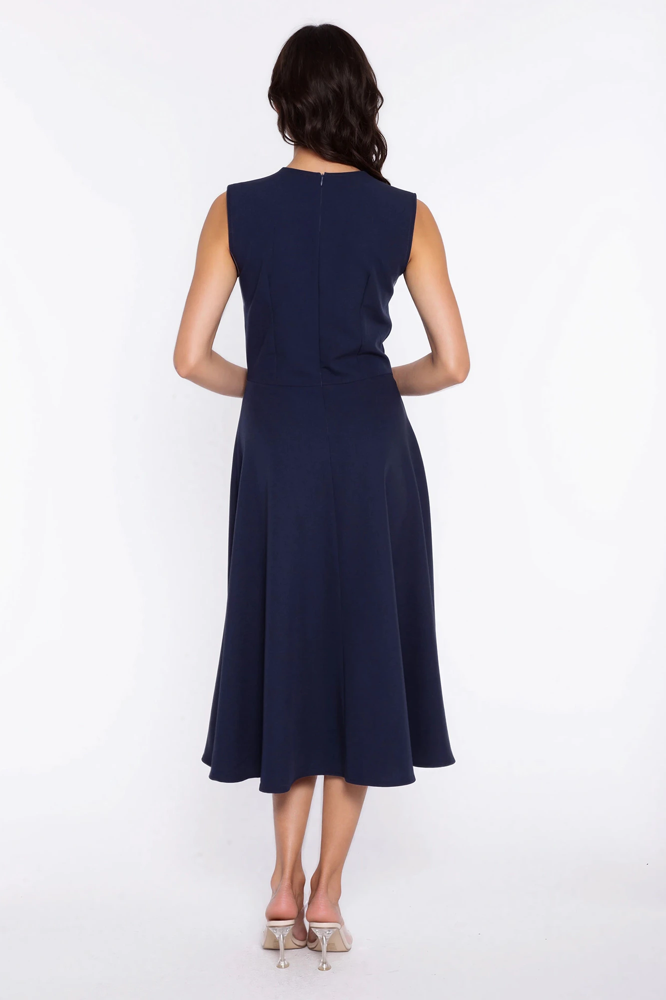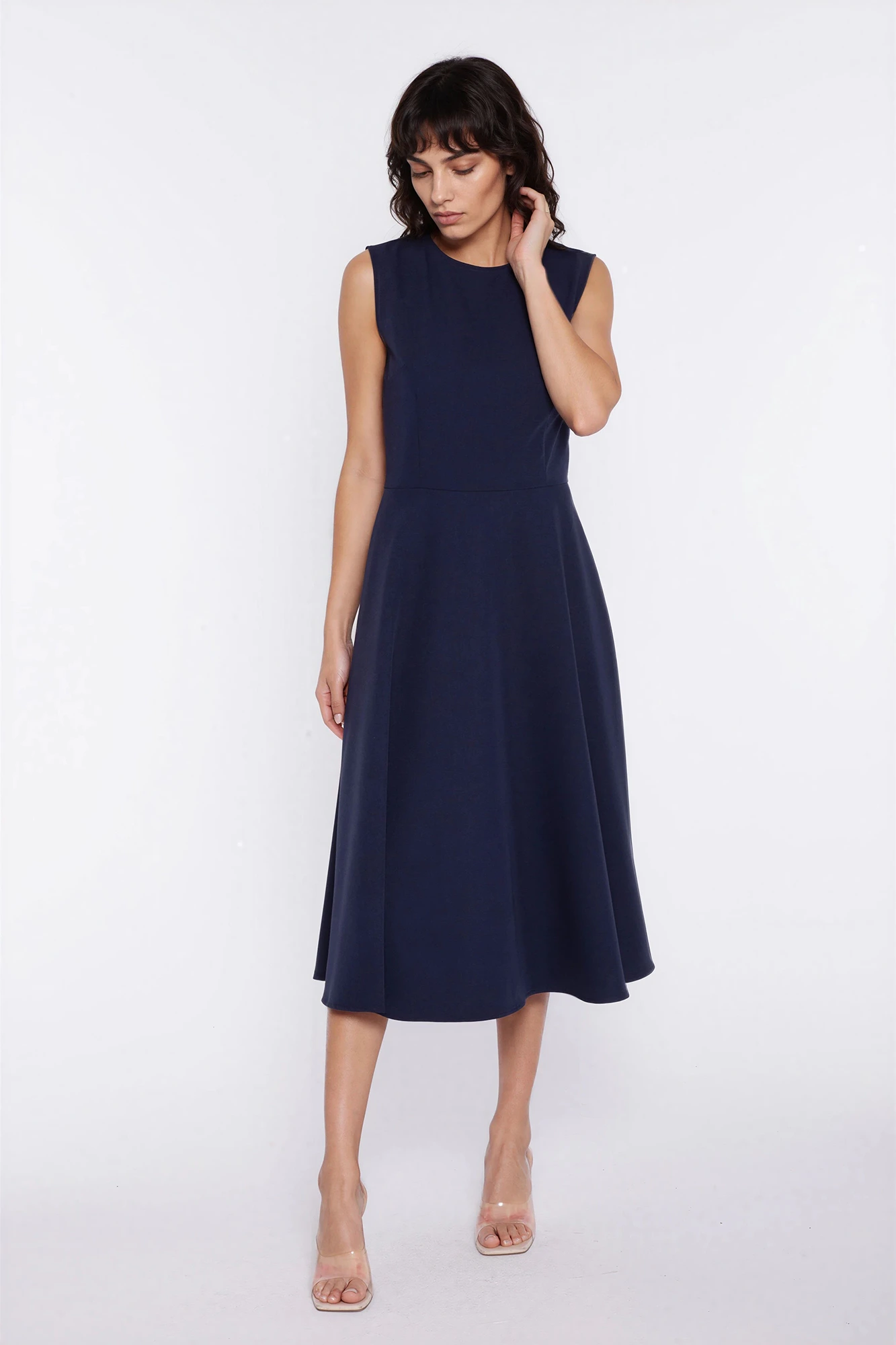 Elegancka sukienka midi bez rękawów z rozkloszowanym dołem