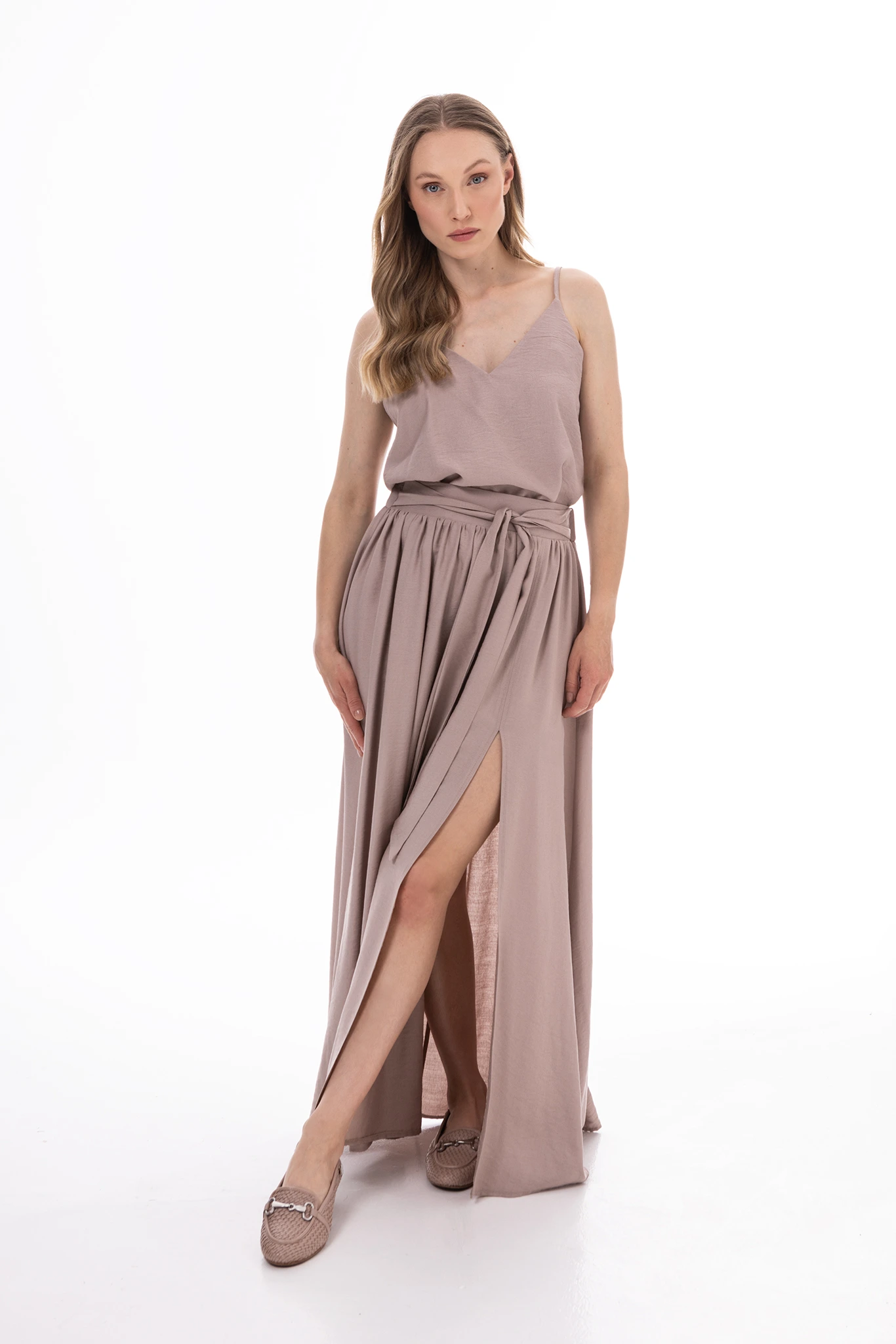 • długa spódnica maxi w kolorze kaszmirowym (taupe)