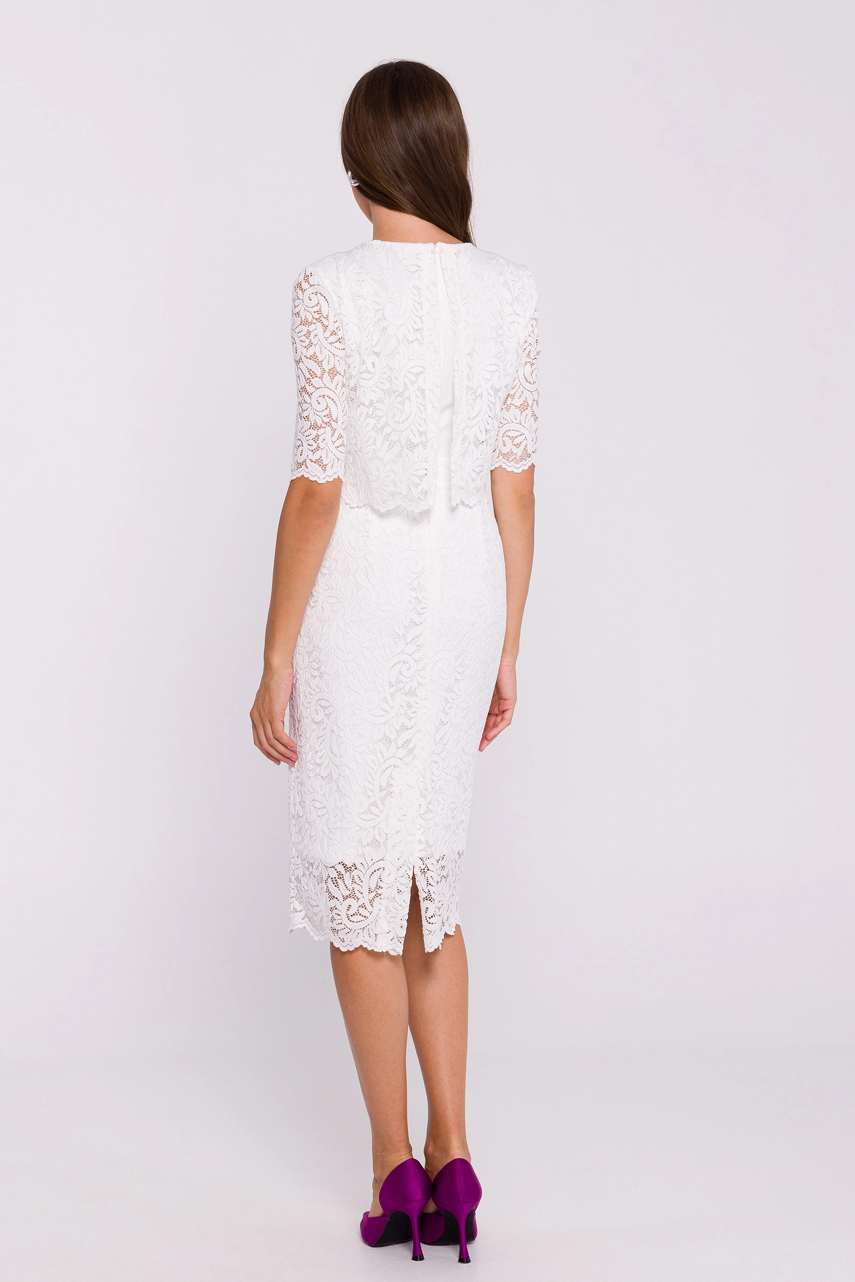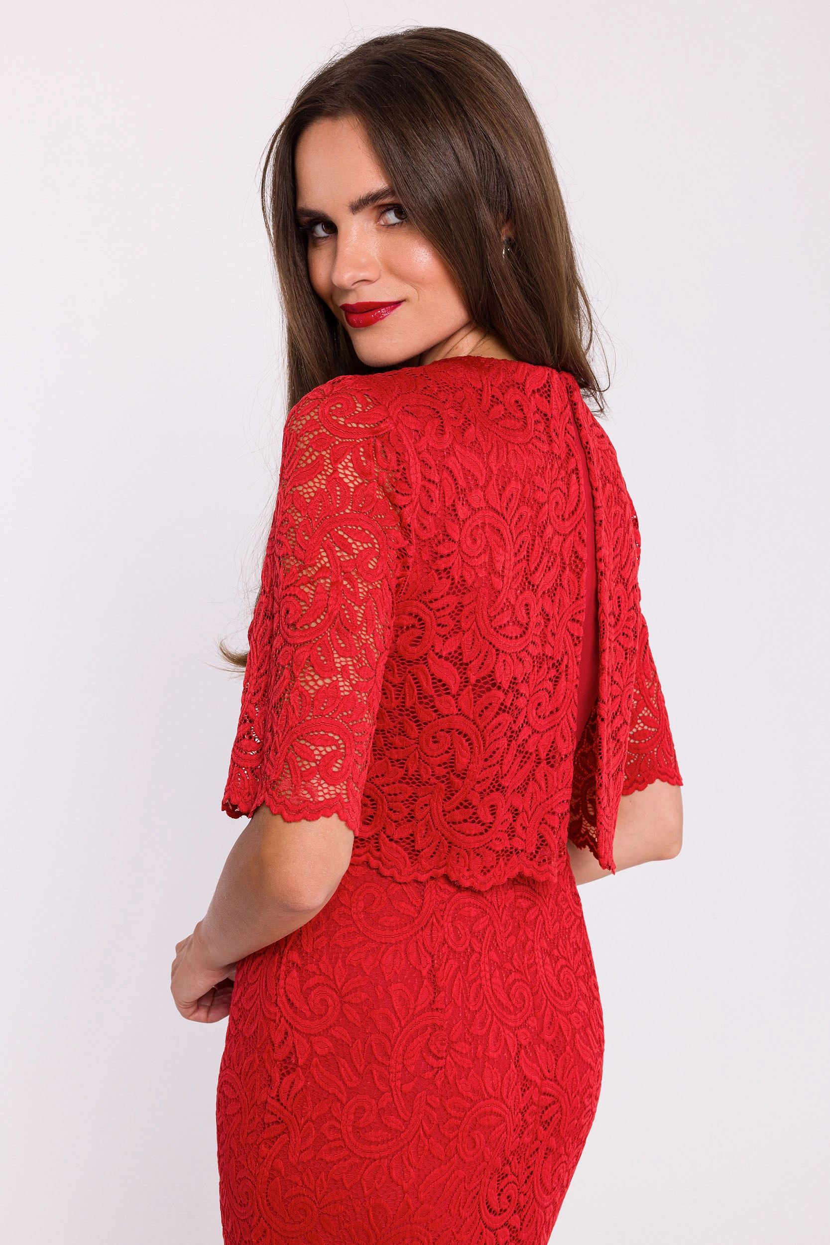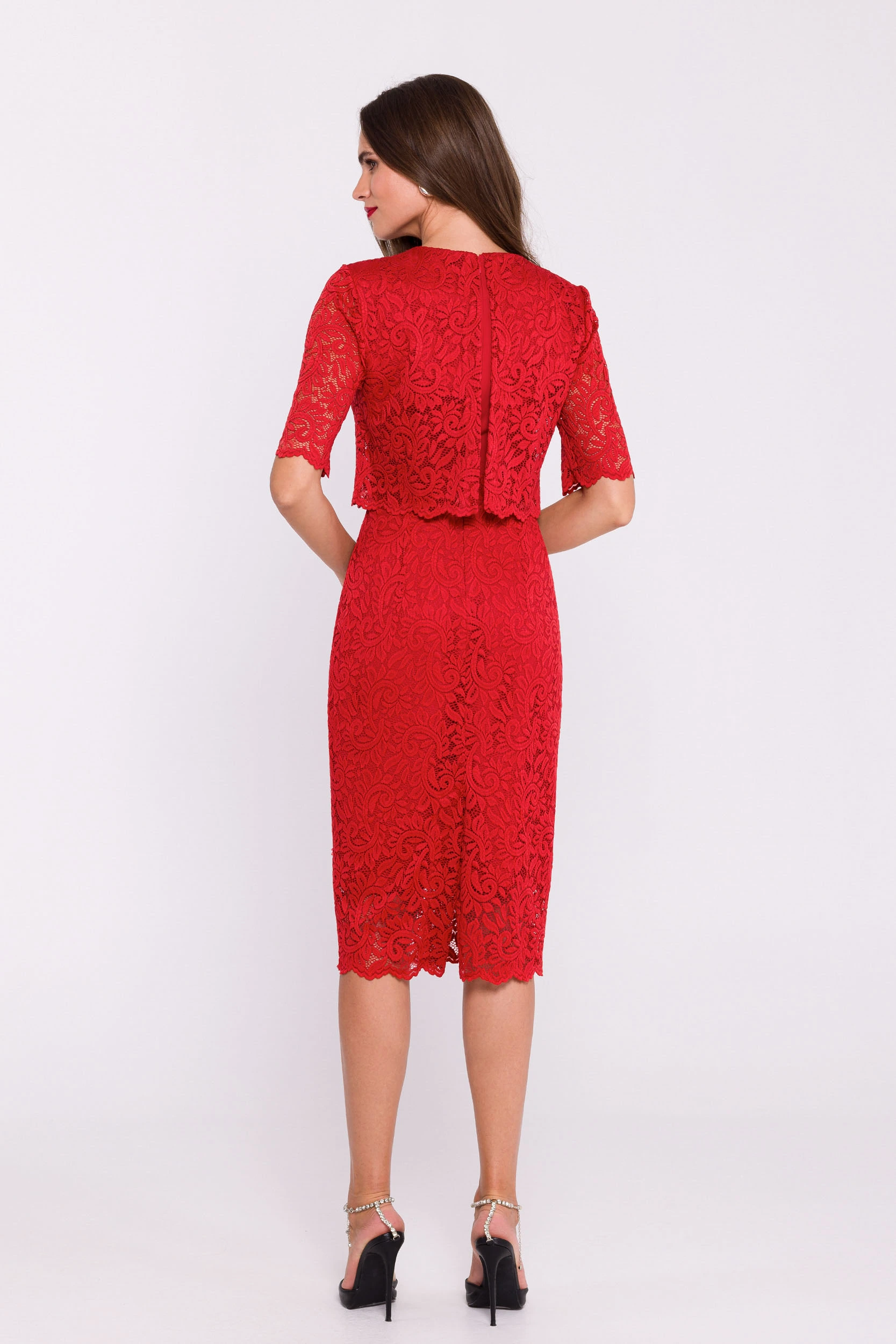Koronkowa sukienka midi z narzutką ołówkowa elegancka