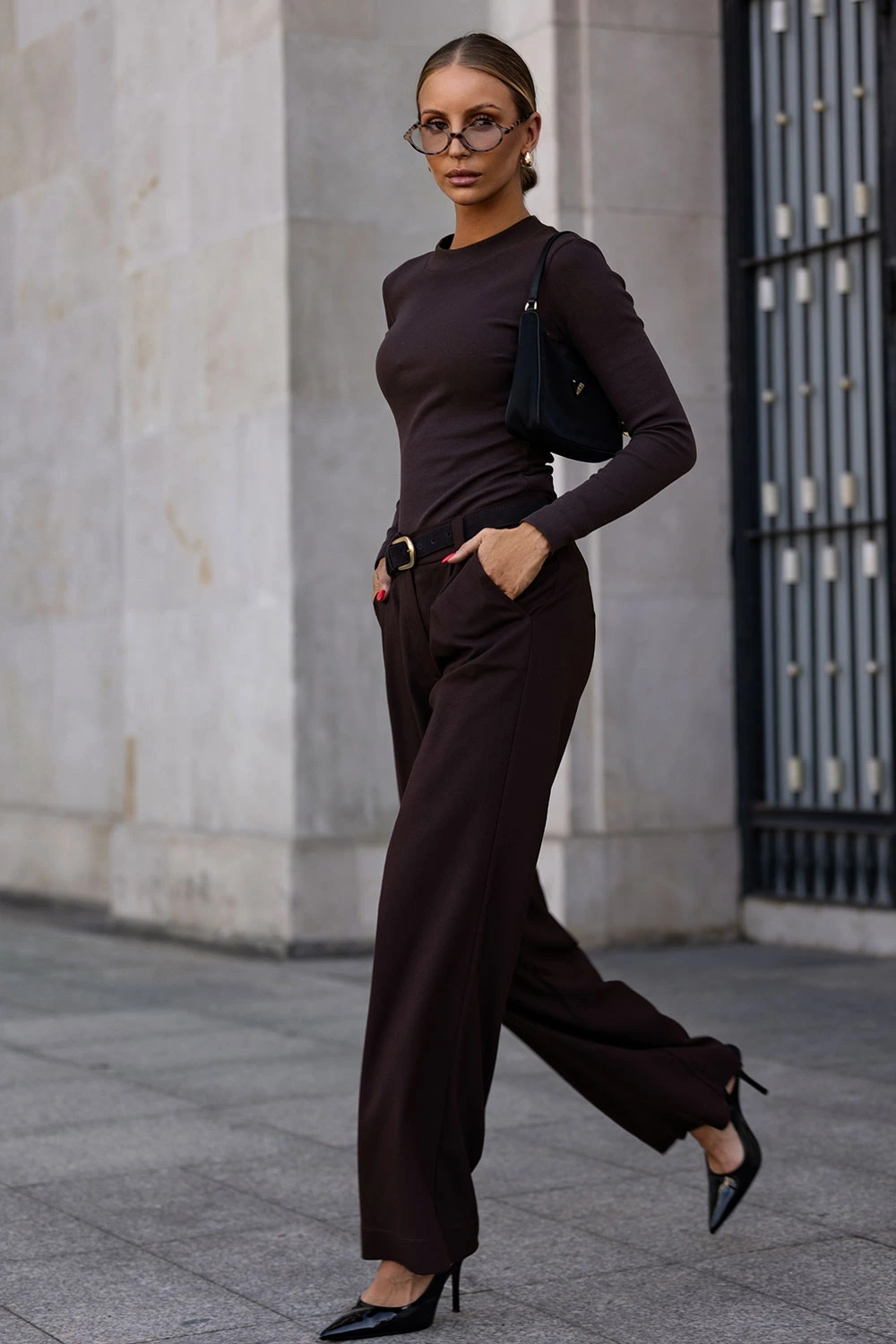 Nowoczesne spodnie z wysokim stanem w kolorze szarym to doskonała propozycja dla kobiet ceniących elegancję połączoną z wygodą. Dzięki wysokiej talii i luźnemu krojowi, spodnie te subtelnie podkreślają sylwetkę, zapewniając jednocześnie pełen komfort noszenia. Wykonane z wysokiej jakości materiału, gwarantują trwałość i wygodę przez cały dzień. Idealnie sprawdzą się zarówno w formalnych stylizacjach, jak i w codziennych zestawach, tworząc ponadczasowy look. To uniwersalny element garderoby, który doskonale komponuje się z różnymi dodatkami.