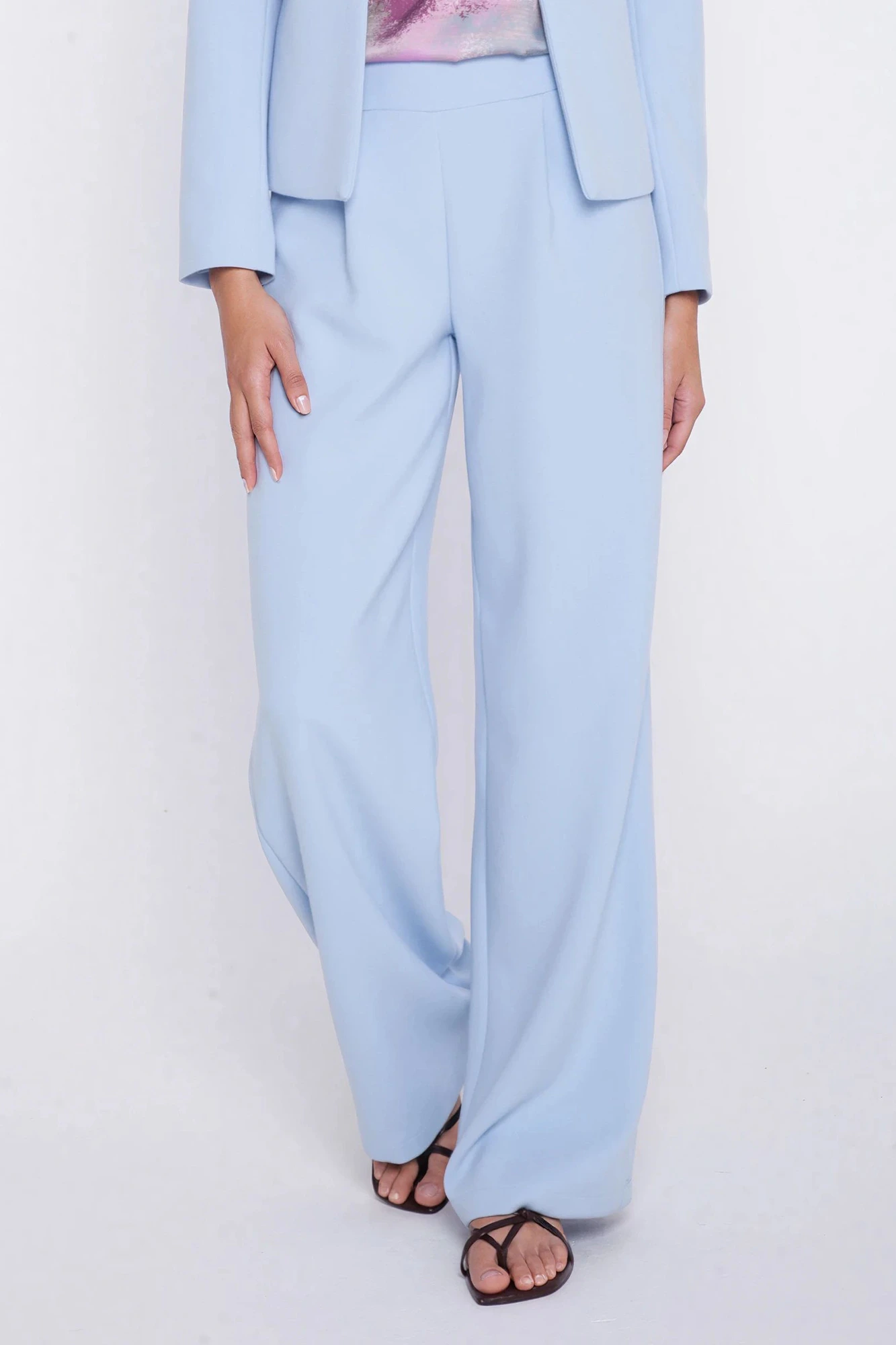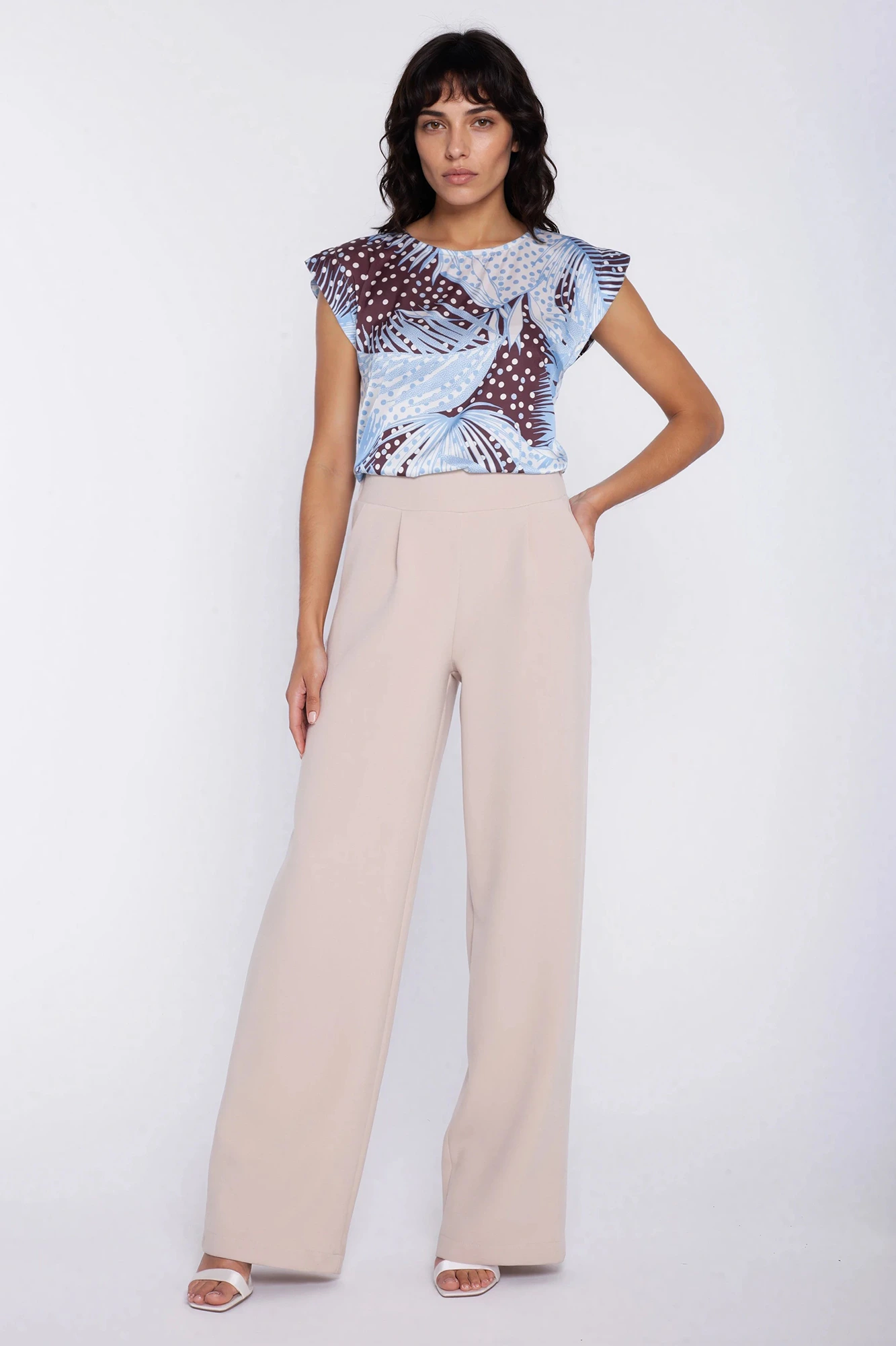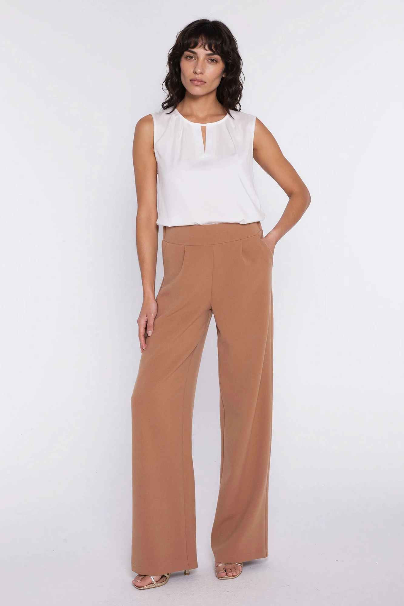 Eleganckie spodnie damskie z szeroką nogawką i wysokim stanem