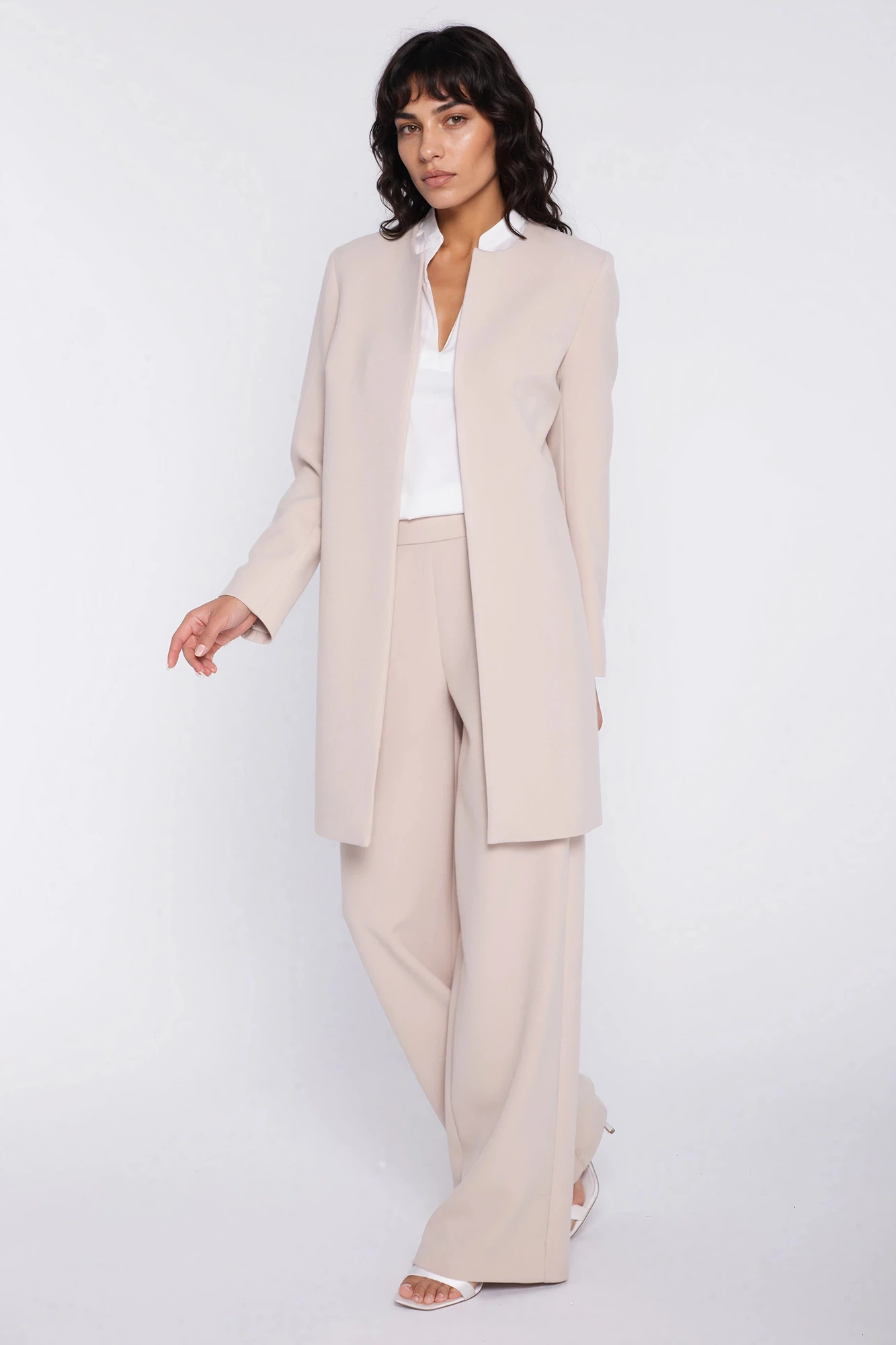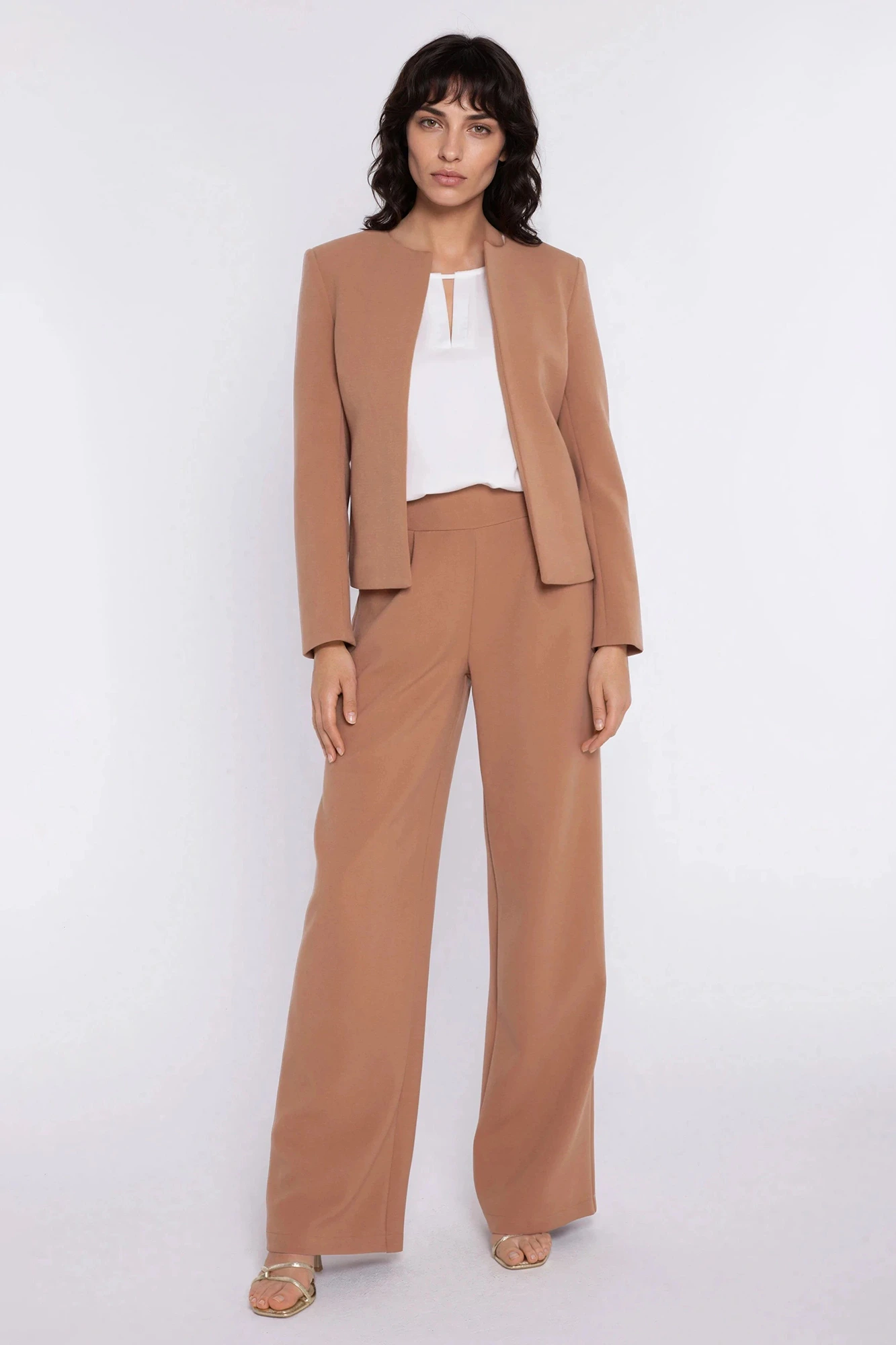 Eleganckie spodnie damskie z szeroką nogawką i wysokim stanem to doskonała baza wielu nowoczesnych stylizacji – od biurowych po bardziej wizytowe. Wysoki stan pięknie podkreśla talię, a szerokie, proste nogawki optycznie wydłużają sylwetkę i nadają jej lekkości. Minimalistyczny fason sprawia, że model prezentuje się wyjątkowo elegancko i ponadczasowo. To spodnie, które świetnie komponują się zarówno z bluzką, koszulą, jak i dopasowaną marynarką, tworząc spójny, kobiecy look.