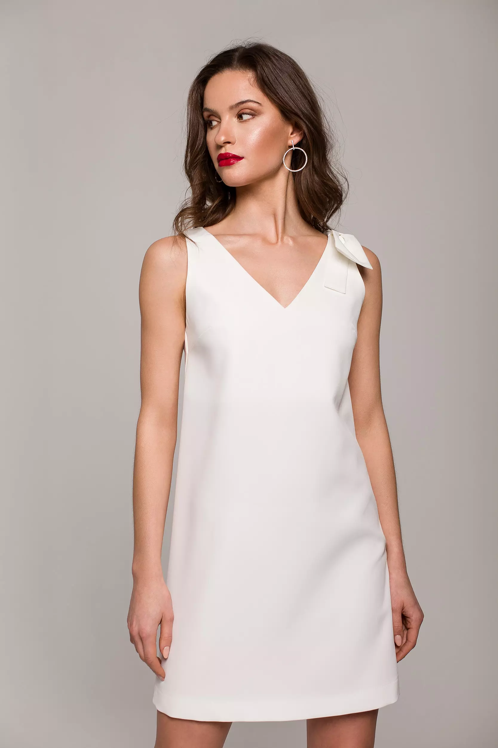 Prosta sukienka z ozdobną kokardką na ramieniu
