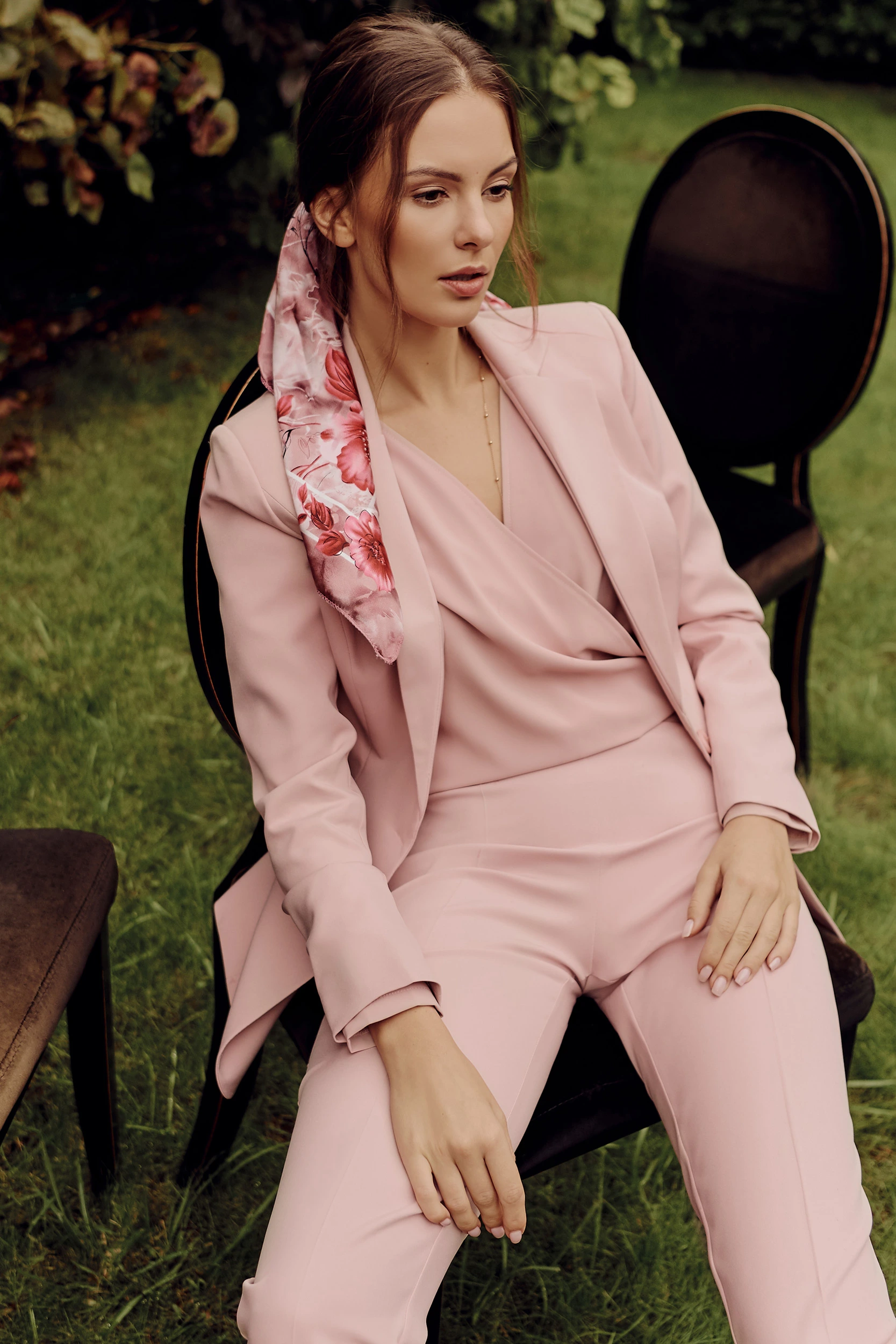Pudroworóżowy żakiet damski na komunię – elegancja w subtelnym wydaniu