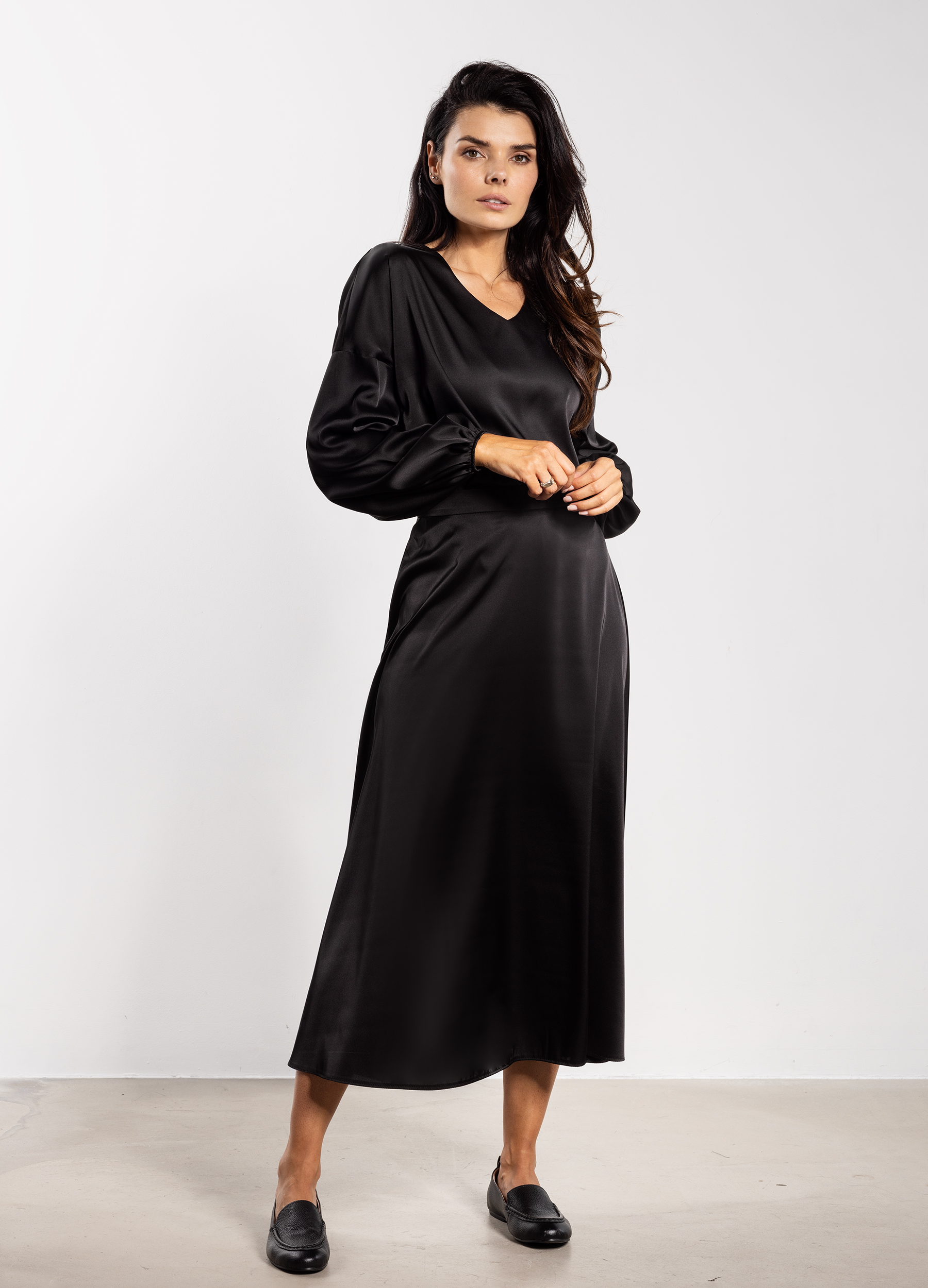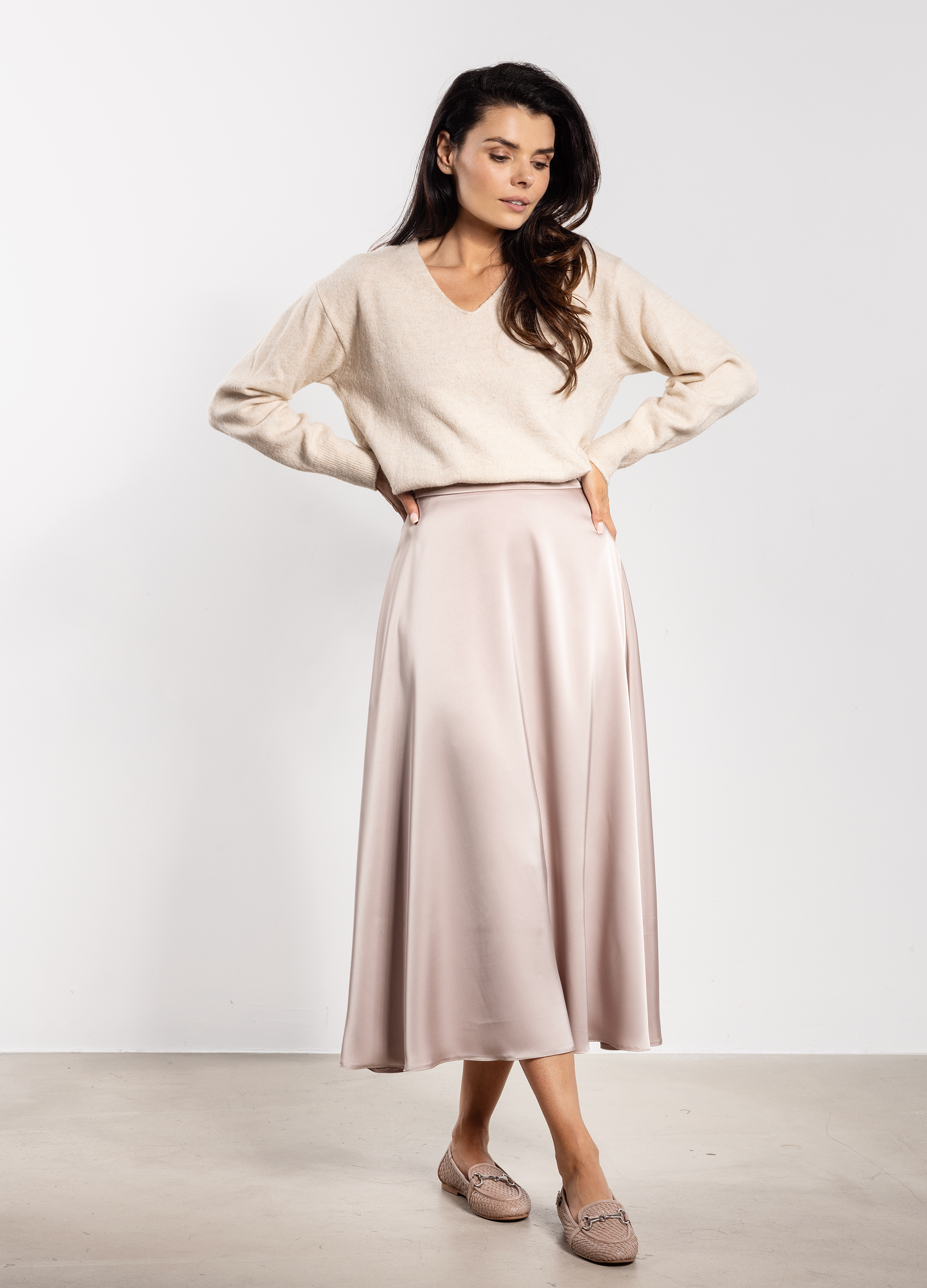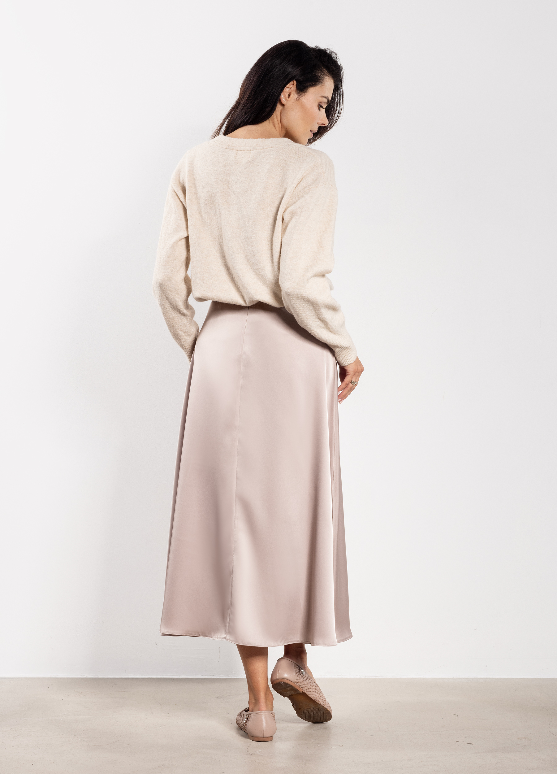 Satynowa spódnica midi z wysokim stanem - elegancki fason