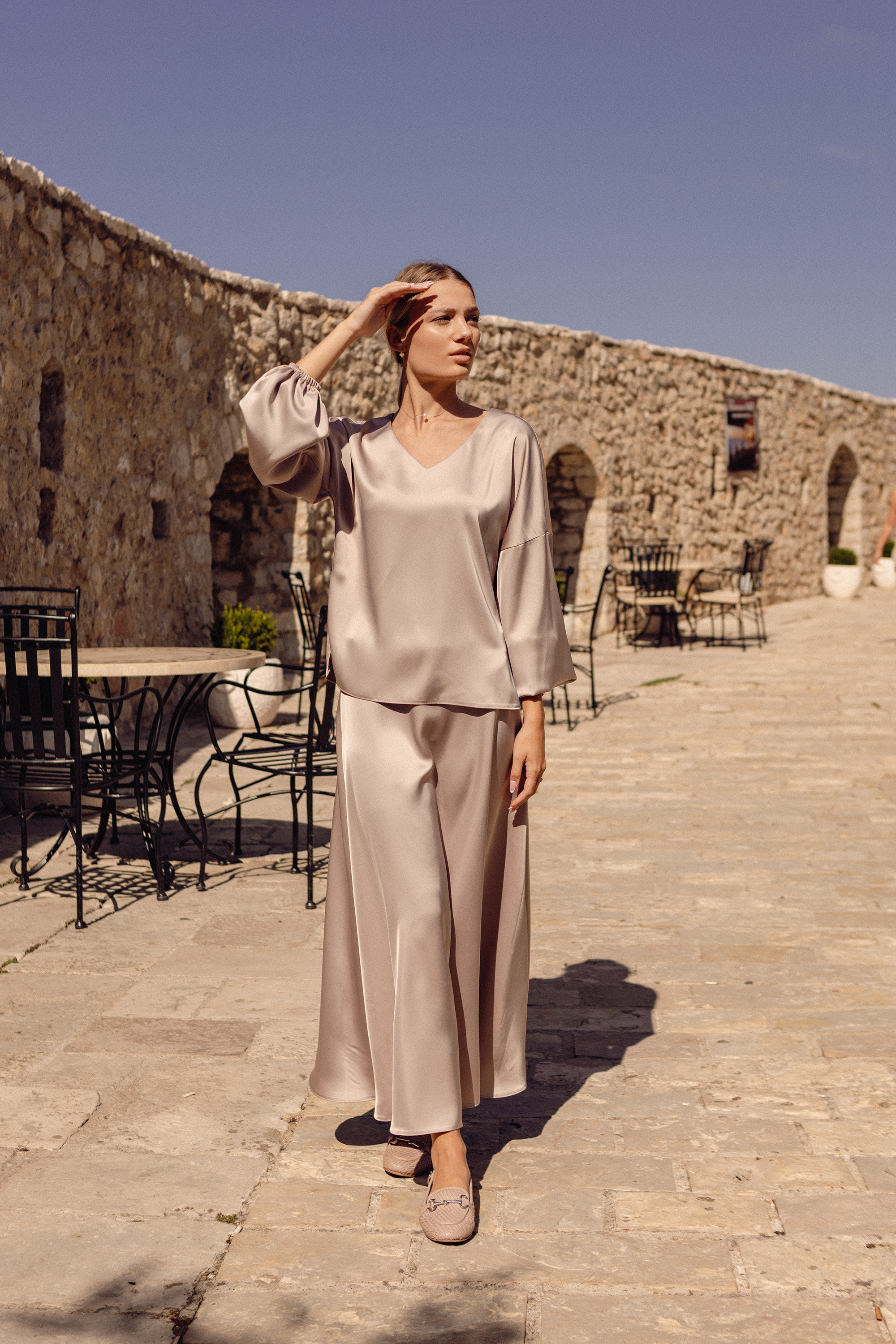 Satynowa spódnica midi to klasyczny element garderoby, który zachwyca swoją prostotą i elegancją. Delikatny połysk tkaniny nadaje stylizacji wyjątkowego charakteru, sprawiając, że model doskonale sprawdzi się zarówno na co dzień, jak i podczas bardziej formalnych okazji. Spódnica posiada wysoki stan, który pięknie podkreśla talię i optycznie wydłuża sylwetkę. Rozkloszowany krój gwarantuje swobodę ruchów i lekkość, a długość za kolano dodaje całości klasy i ponadczasowego szyku.