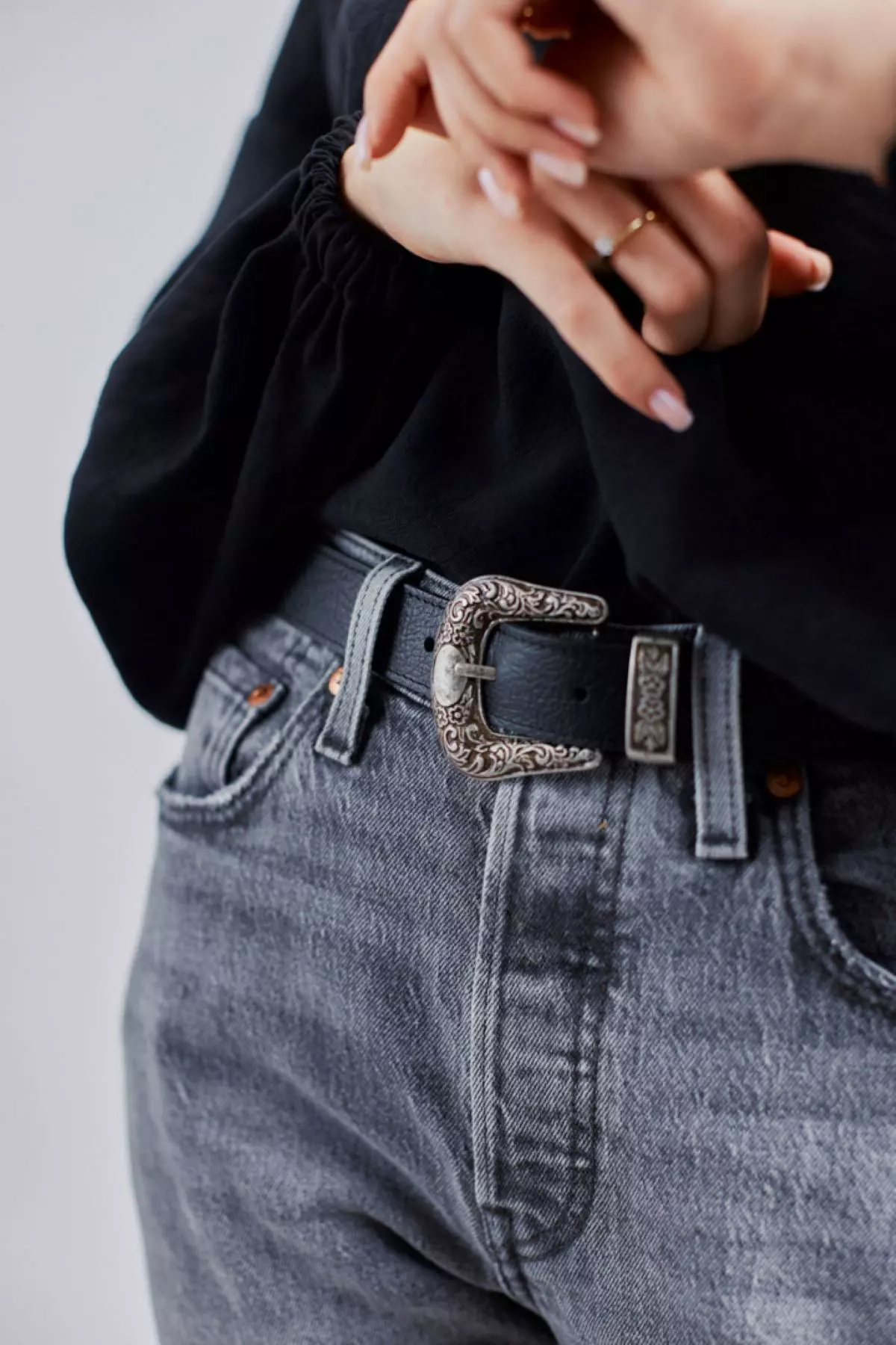 Skórzany pasek damski z ozdobną klamrą w stylu western