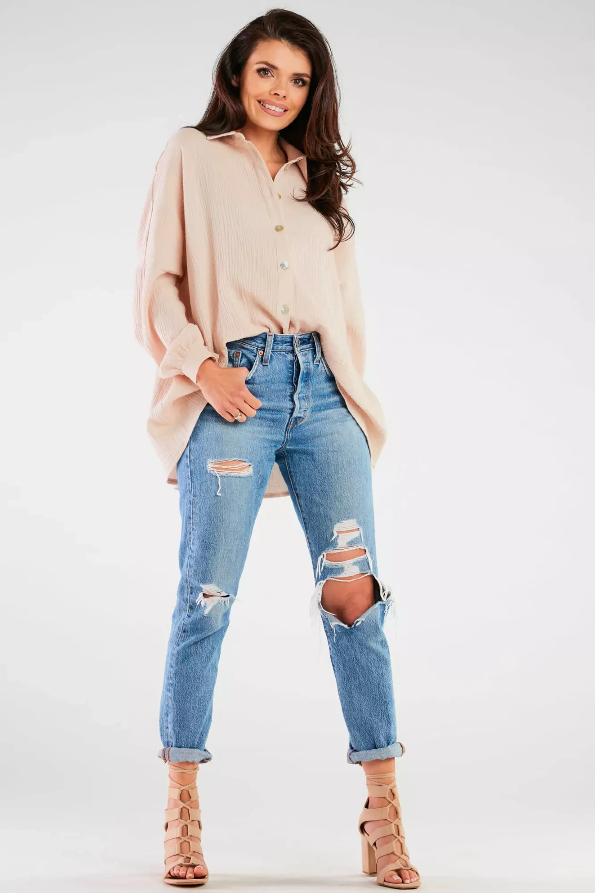 Stylowa koszula damska oversize z kołnierzykiem