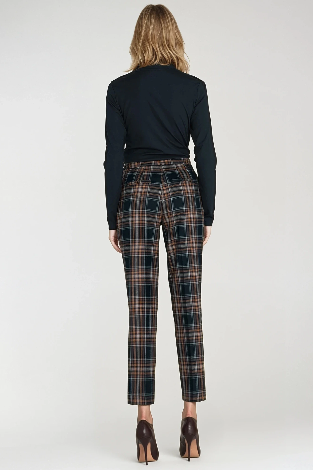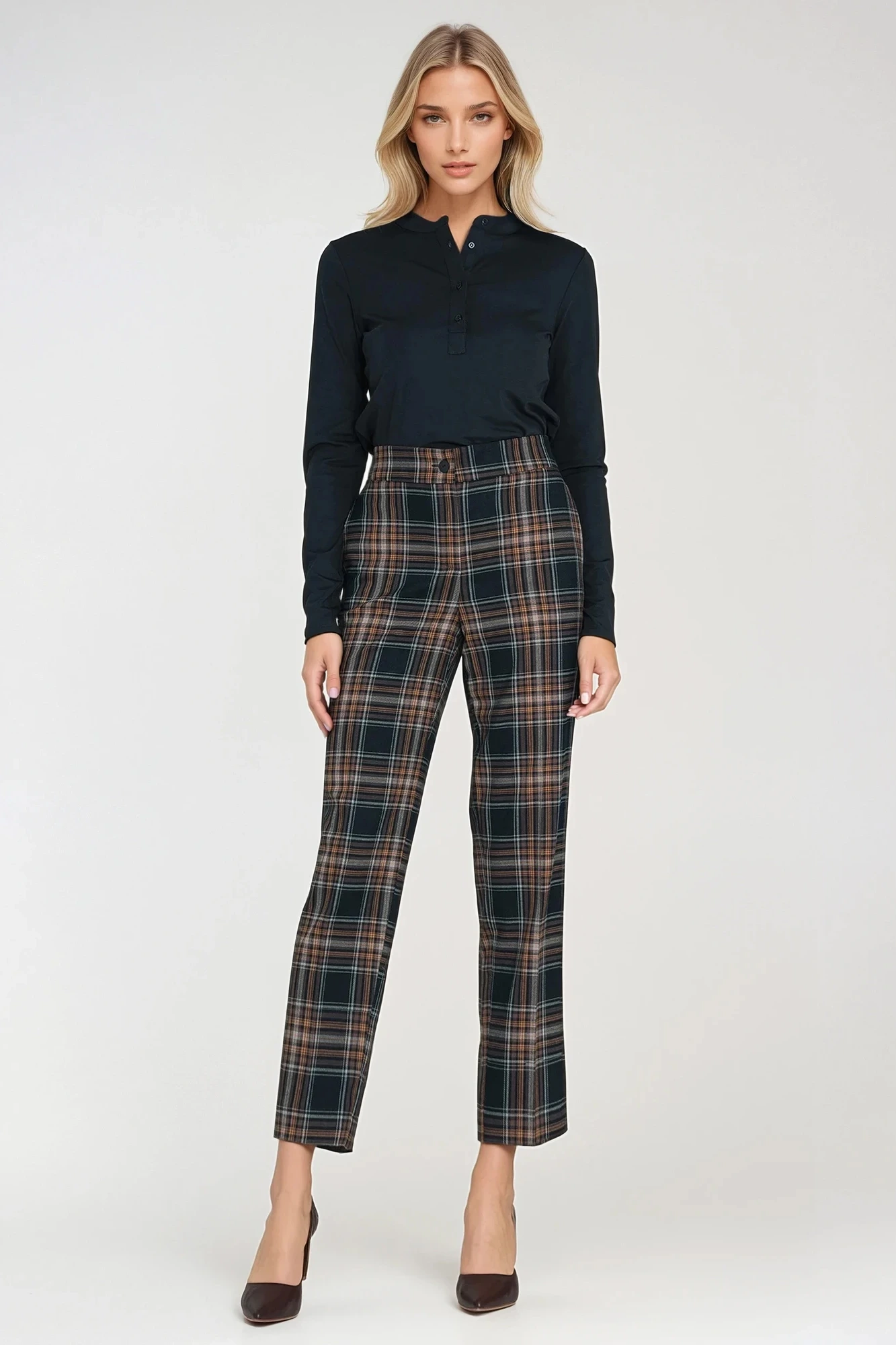 Stylowe spodnie w kratę, które łączą szyk garniturowy z wygodą na cały dzień. Doskonale sprawdzą się w biurze, na spotkaniach biznesowych oraz jako baza eleganckich stylizacji smart casual. Klasyczna linia nogawki optycznie wysmukla sylwetkę, a dopracowany krój w talii gwarantuje komfort nawet przy intensywnym dniu w pracy. To model, który łatwo połączysz zarówno z koszulą, jak i z golfem czy prostym T-shirtem pod marynarkę.