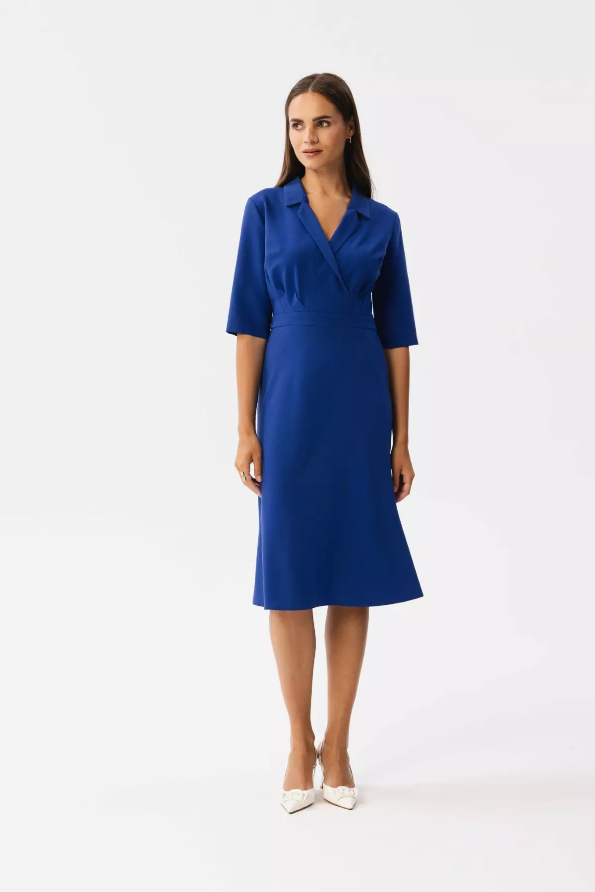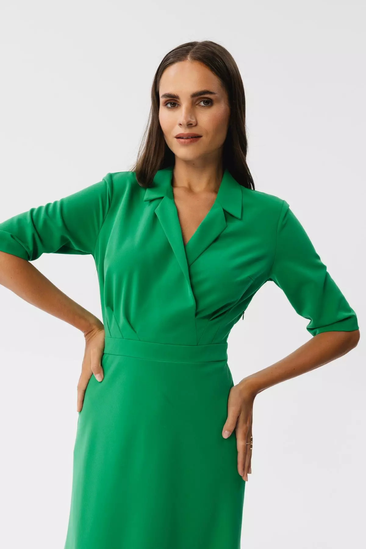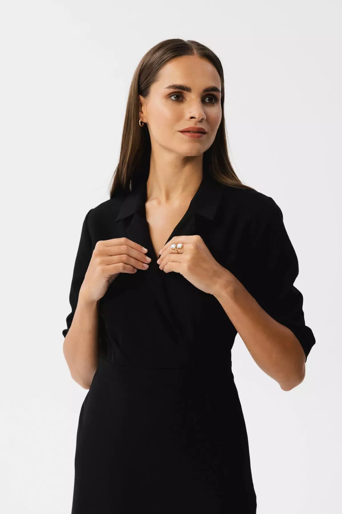 • kopertowy dekolt z kołnierzykiem