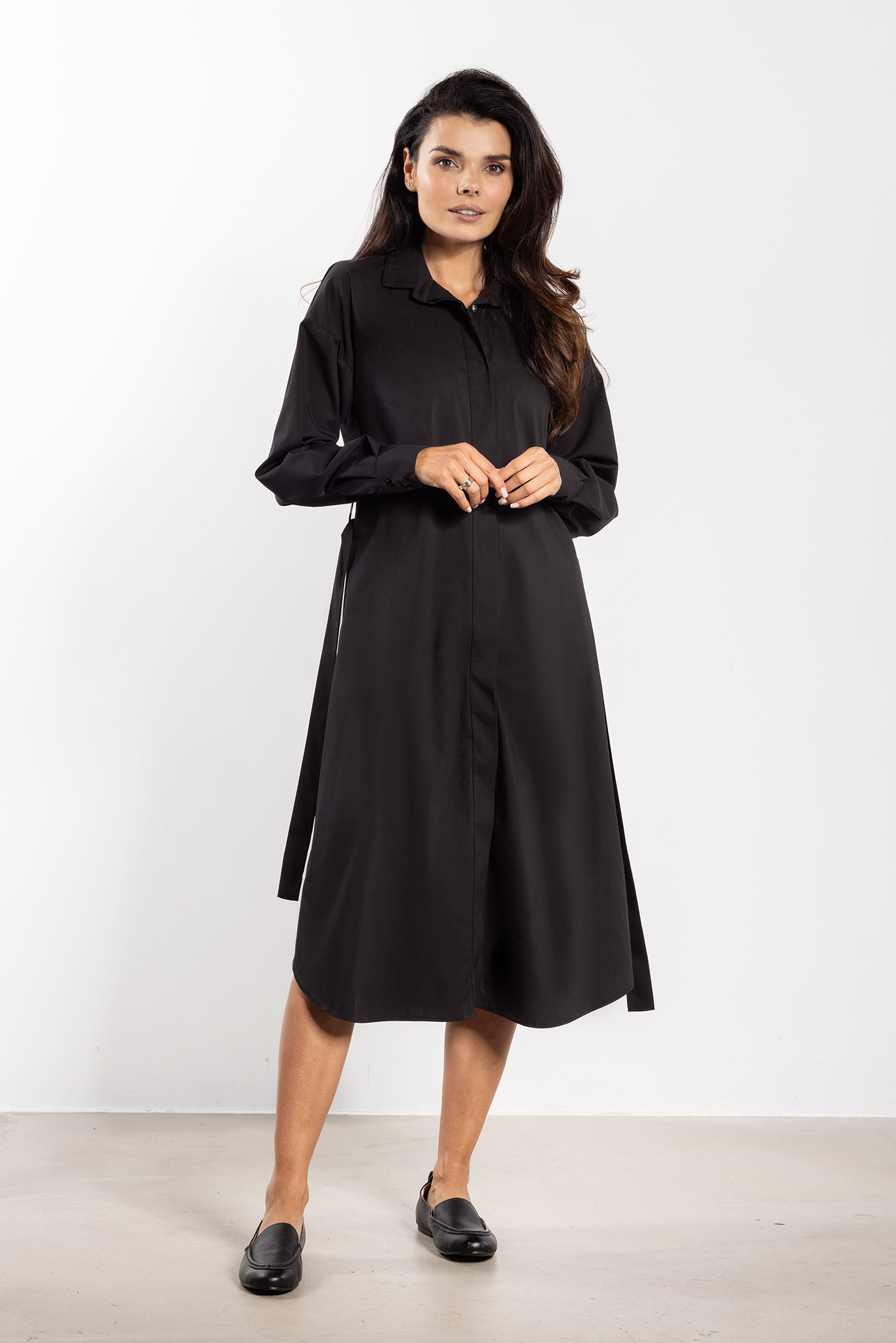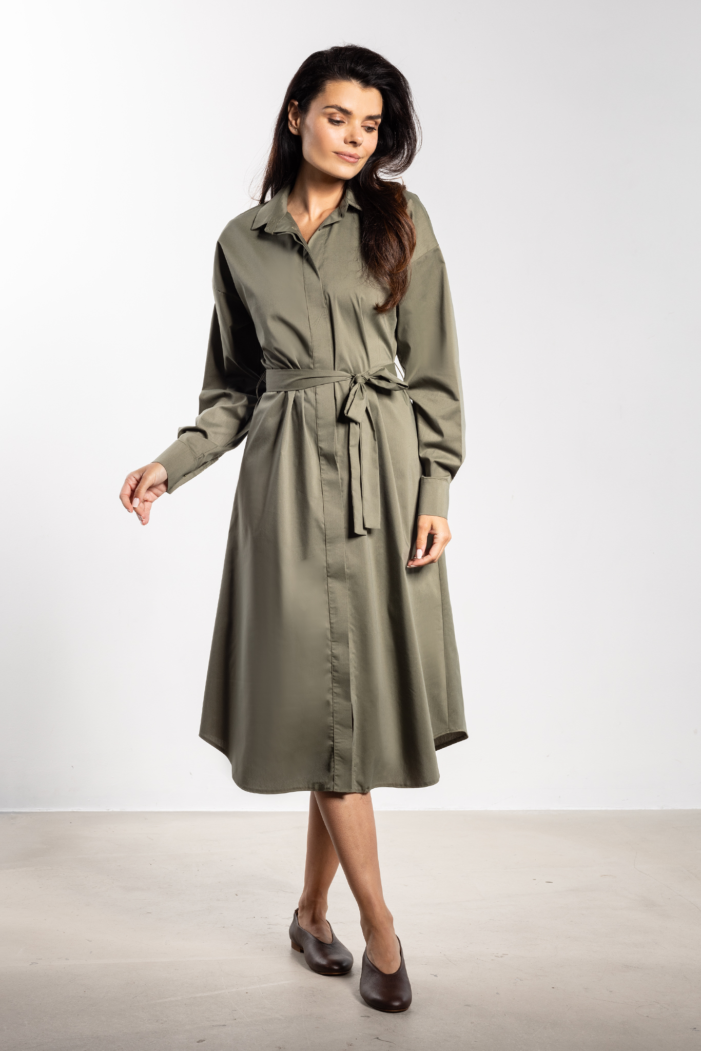 Sukienka koszulowa midi z paskiem i długimi rękawami