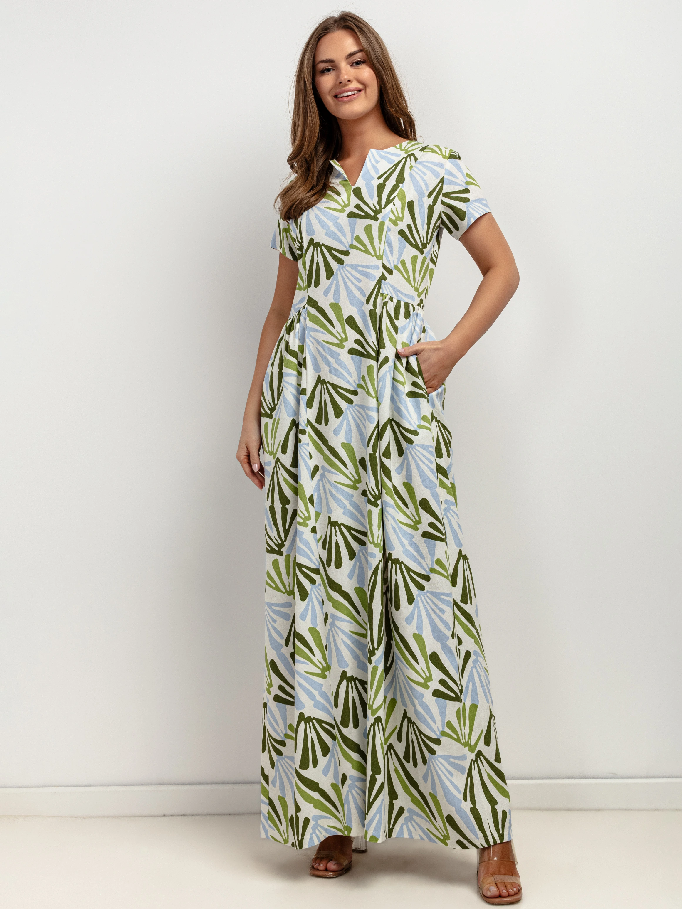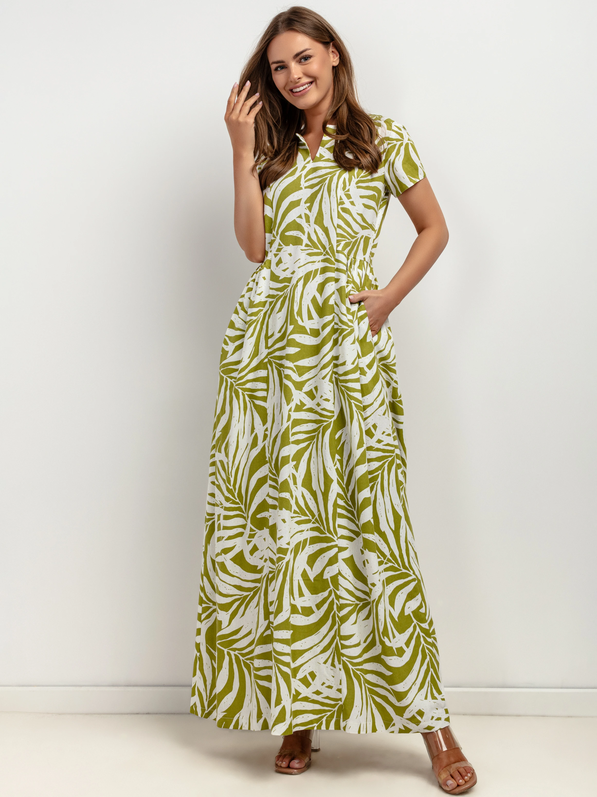 Sukienka maxi z kołnierzykiem i kieszeniami