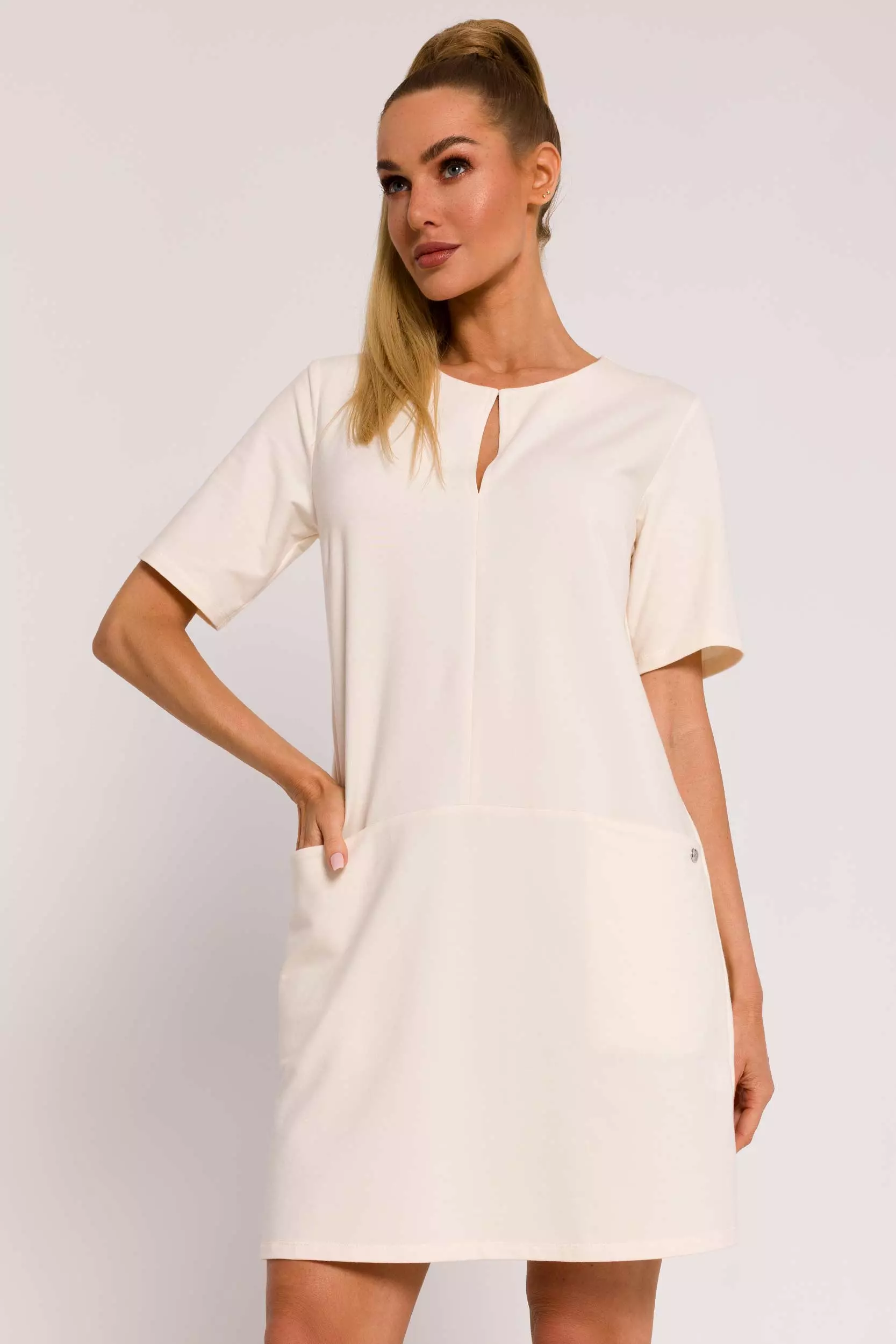 Sukienka mini o trapezowym kroju z ozdobnym wycięciem