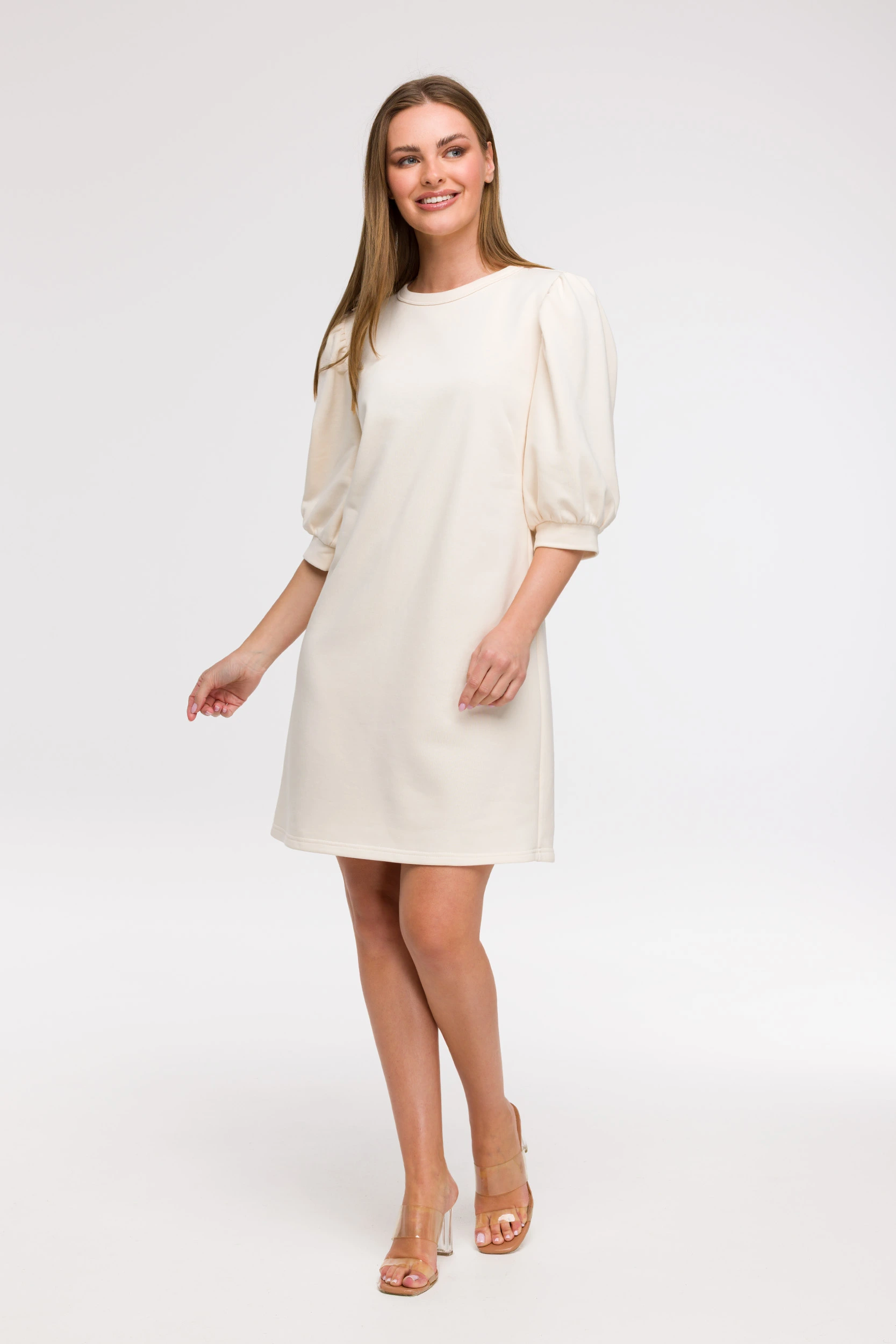 Sukienka o prostym fasonie z bufiastymi rękawami – elegancka i nowoczesna propozycja na wiele okazji